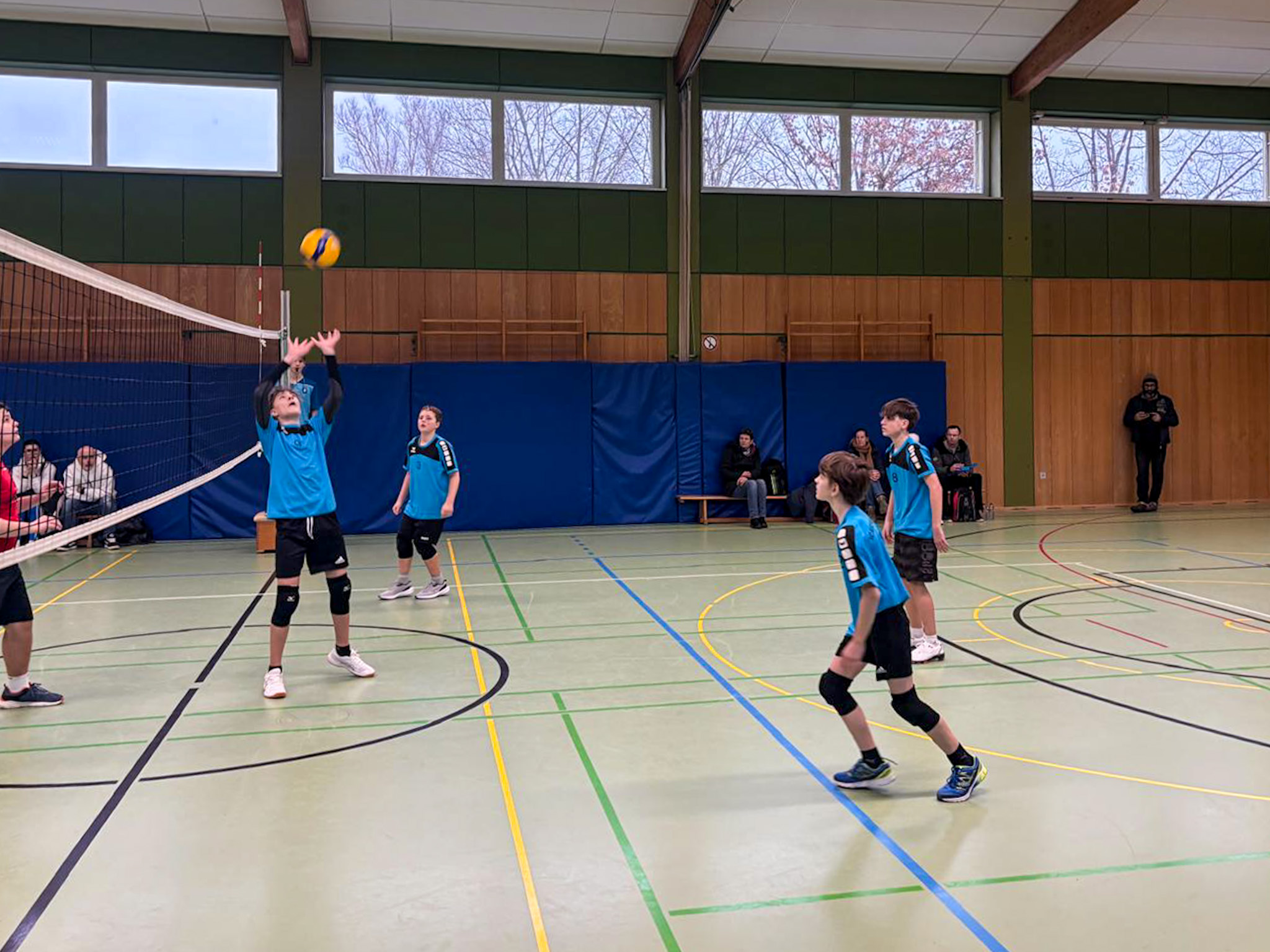 „Wenn wir den zweiten Satz verlieren, ist das doch nicht schlimm. Dann können wir noch einen dritten spielen!“ Der zweite Satz gegen die Spielgemeinschaft aus Bad Windsheim und Burgbernheim wurde trotzdem gewonnen, aber die Aussage eines der jungen Volleyballer zeigt, worum es den Jungs tatsächlich geht: Sie wollen SPIELEN! Leider gibt es im männlichen Jugendbereich nur wenig Möglichkeiten, das zu tun. Für Anfänger, die älter sind als 10 Jahre, fast keine. Diese U15-Runde ist deswegen eine wunderbare Gelegenheit, zu spielen. Und das passierte am vergangenen Sonntag im Herzogenauracher Ortsteil Niederndorf. Alle Spieler vom Volleyballclub hatten ihre Eltern dabei, der VC-Fanclub war größer als der der Gastgeber! Und die Jungs lieferten: Sowohl gegen die Spielgemeinschaft aus West-Mittelfranken als auch gegen den zweiten Gegner vom Post SV Nürnberg zeigten alle, also auch die Youngsters Sven Beckers und Sam Schwarzer, dass sie spielen wollen und können. Zwei klare Siege standen am Ende auf der Haben-Seite. Ein weiterer Satz wäre schön gewesen, aber deutliche Siege sind noch schöner!